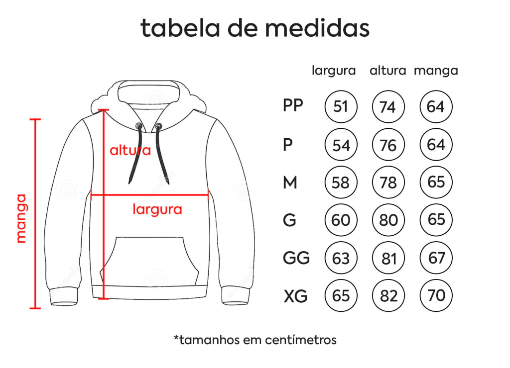 Moletons produzidos em tecido de moletom com forro felpado e gramatura 380 g/m² é bem grosso e quente. A Estampa em DTF (tecnologia Direct To Film), uma inovação do mercado que permite a criação de estampas com cores vibrantes como essa sem perder a qualidade e a durabilidade! A costura é reforçada com acabamento em viés ombro a ombro. Gola em ribana e modelagem com caimento reto. Todos modelos são em formato unissex e as medidas podem ter variação de até 3 cm para mais ou para menos. 😃